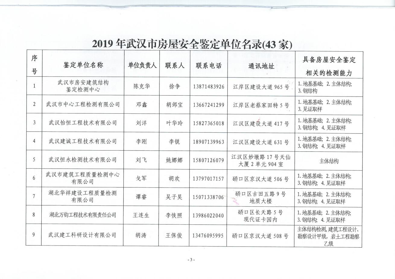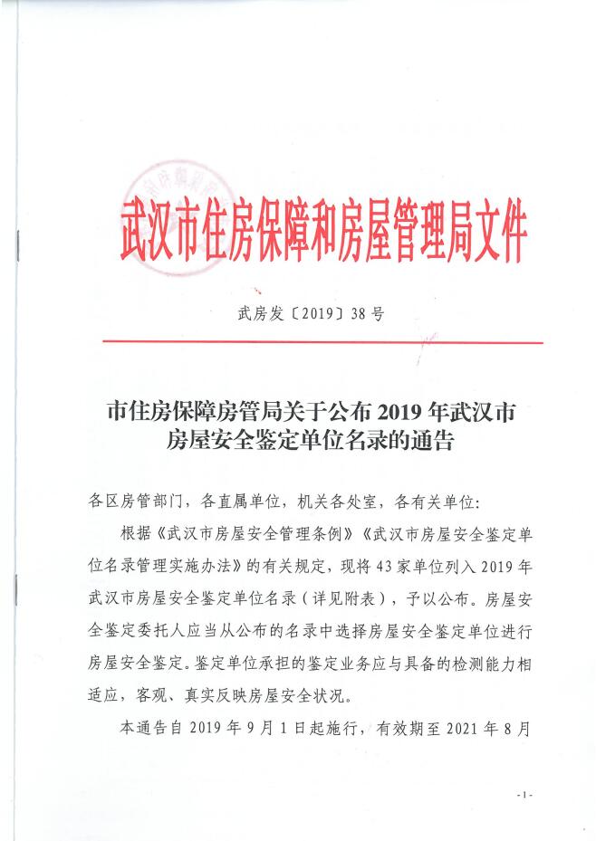 我公司繼續入選2019年武漢市房屋安全鑒定單位名錄